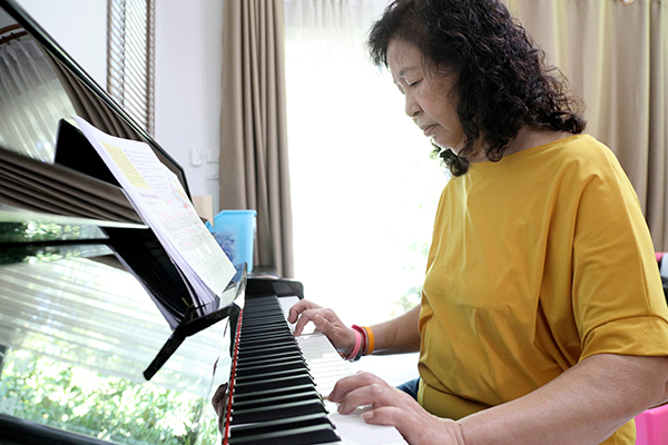 また、⽬で先の⾳符を追うため、⽬の活性化にもなります。シニアから始める⽅もいらっしゃいます。