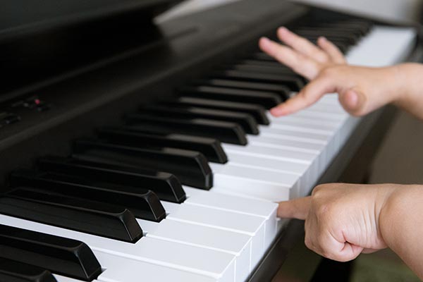 幼児期からのピアノは⾳を聴き、リズムを聴き、楽しむことと同時に楽譜を⾒ることで⾳階を知ります。覚える⼒を使い、右⼿と左⼿で同時に別の動作を⾏うことで左脳と右脳の両⽅を鍛えることに繋がります。